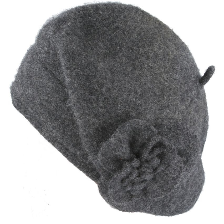 Women’s Floral Trimmed Wool Blend Winter Beret Hat