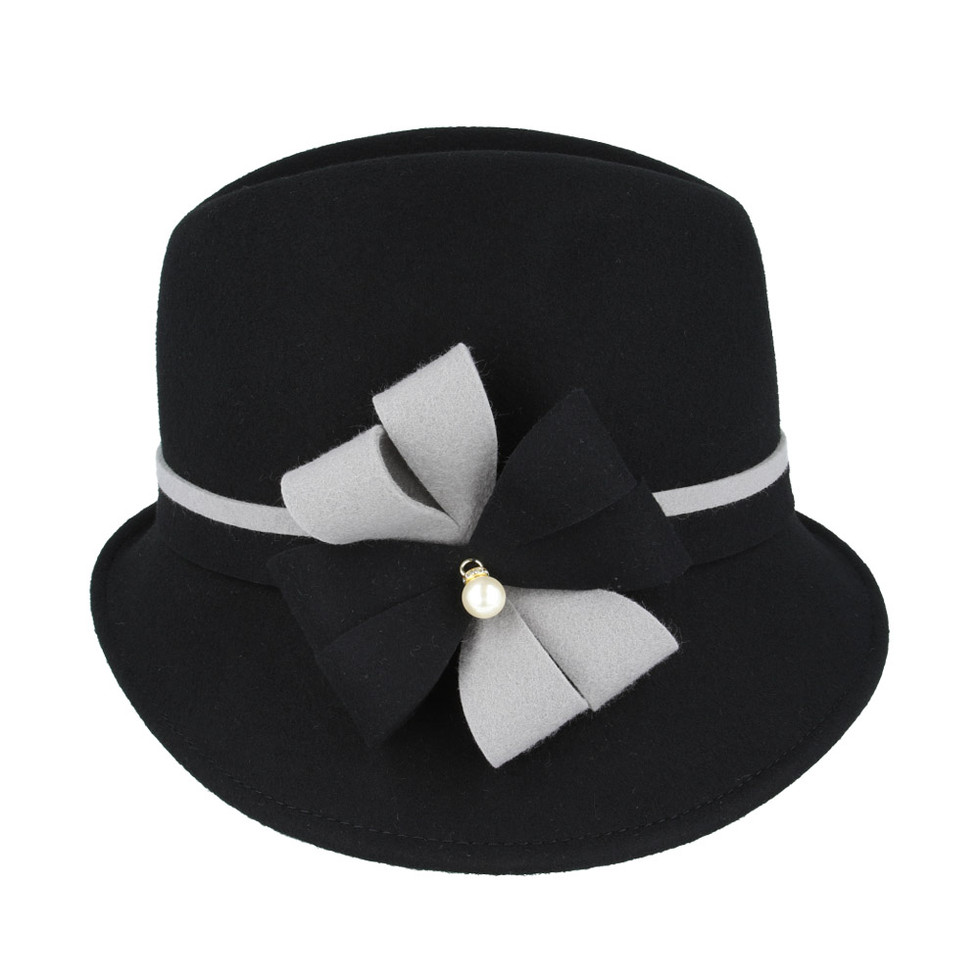 Maz Ladies Chic Vintage Wool Cloche Hat With Flower Bow & Strap belt Around